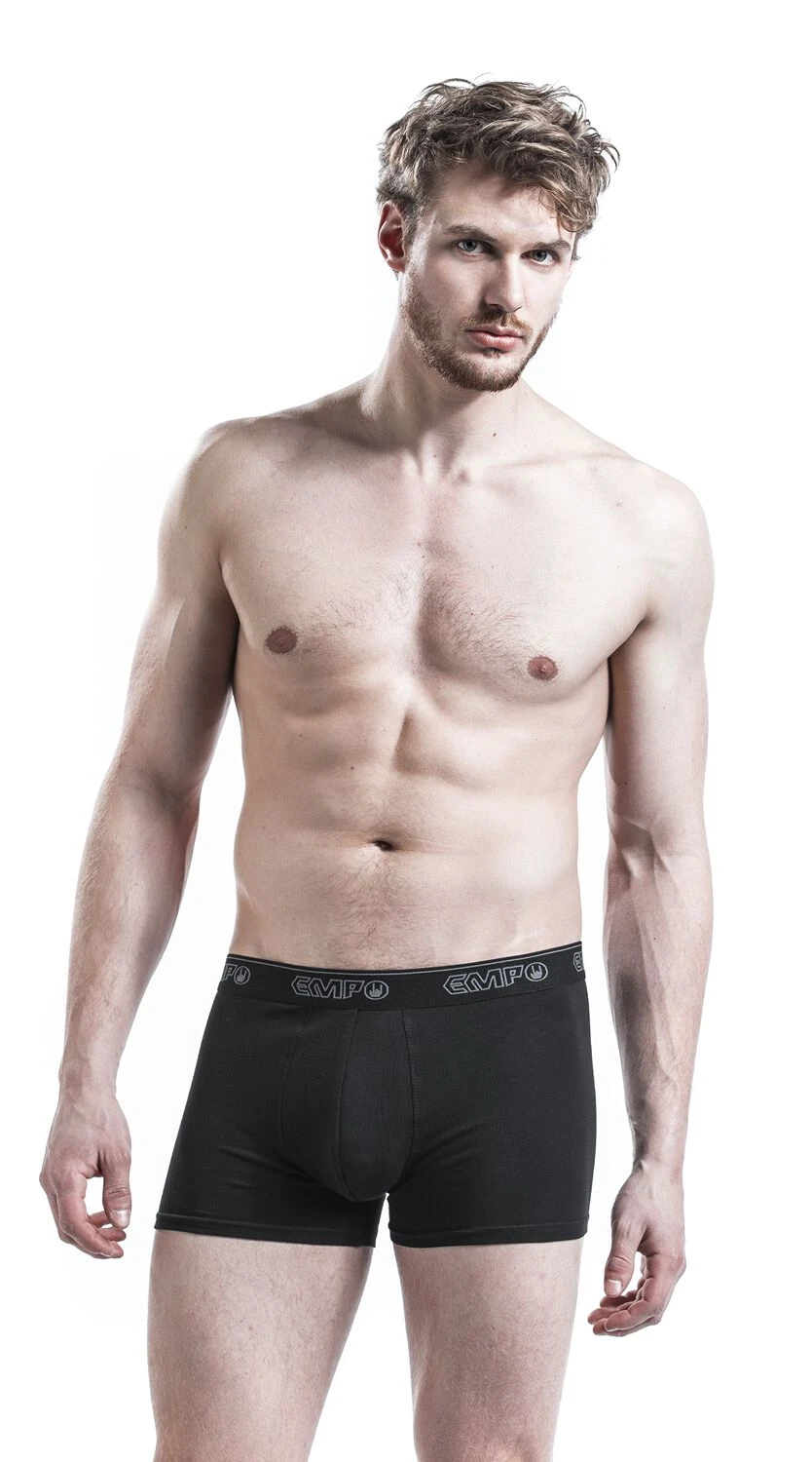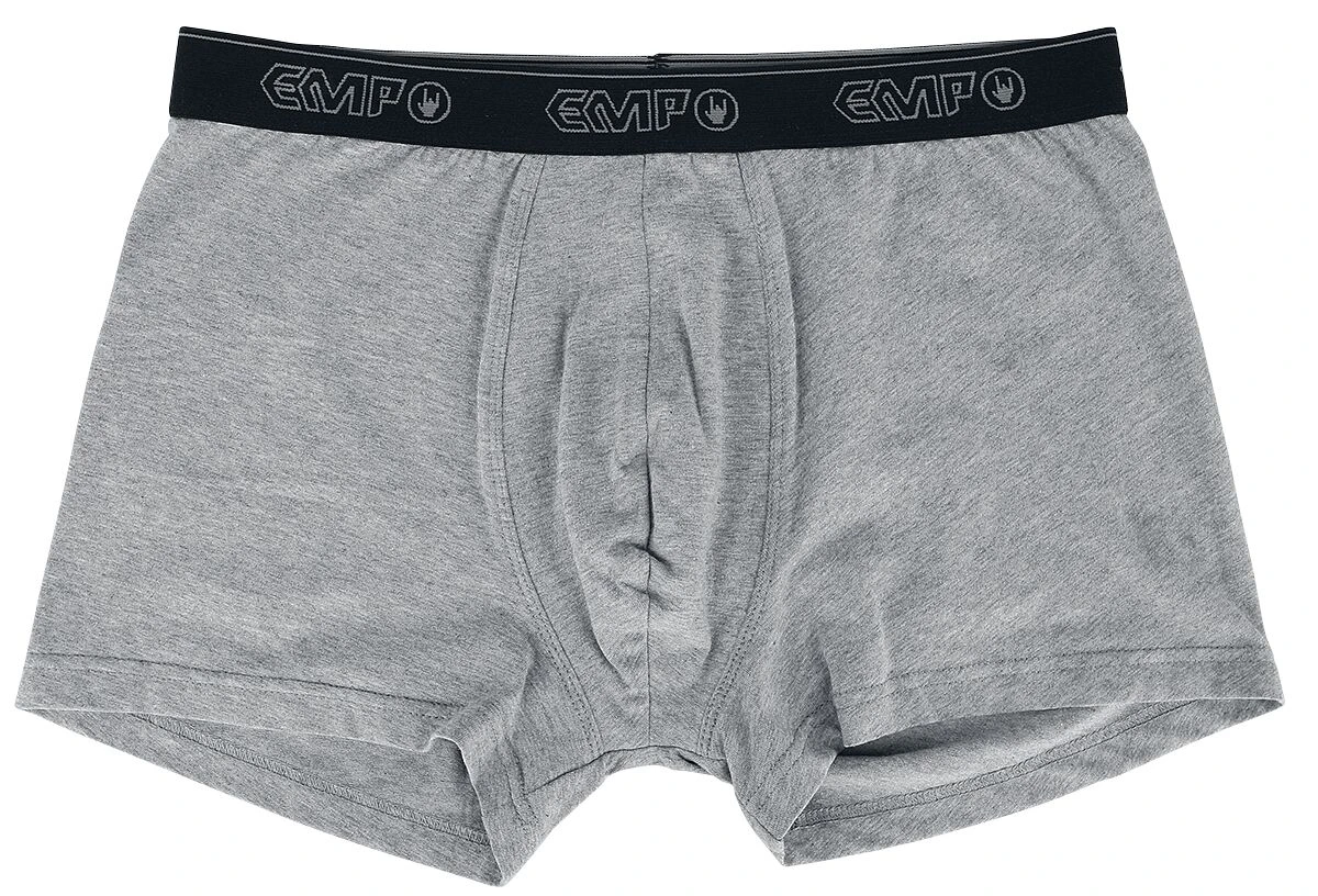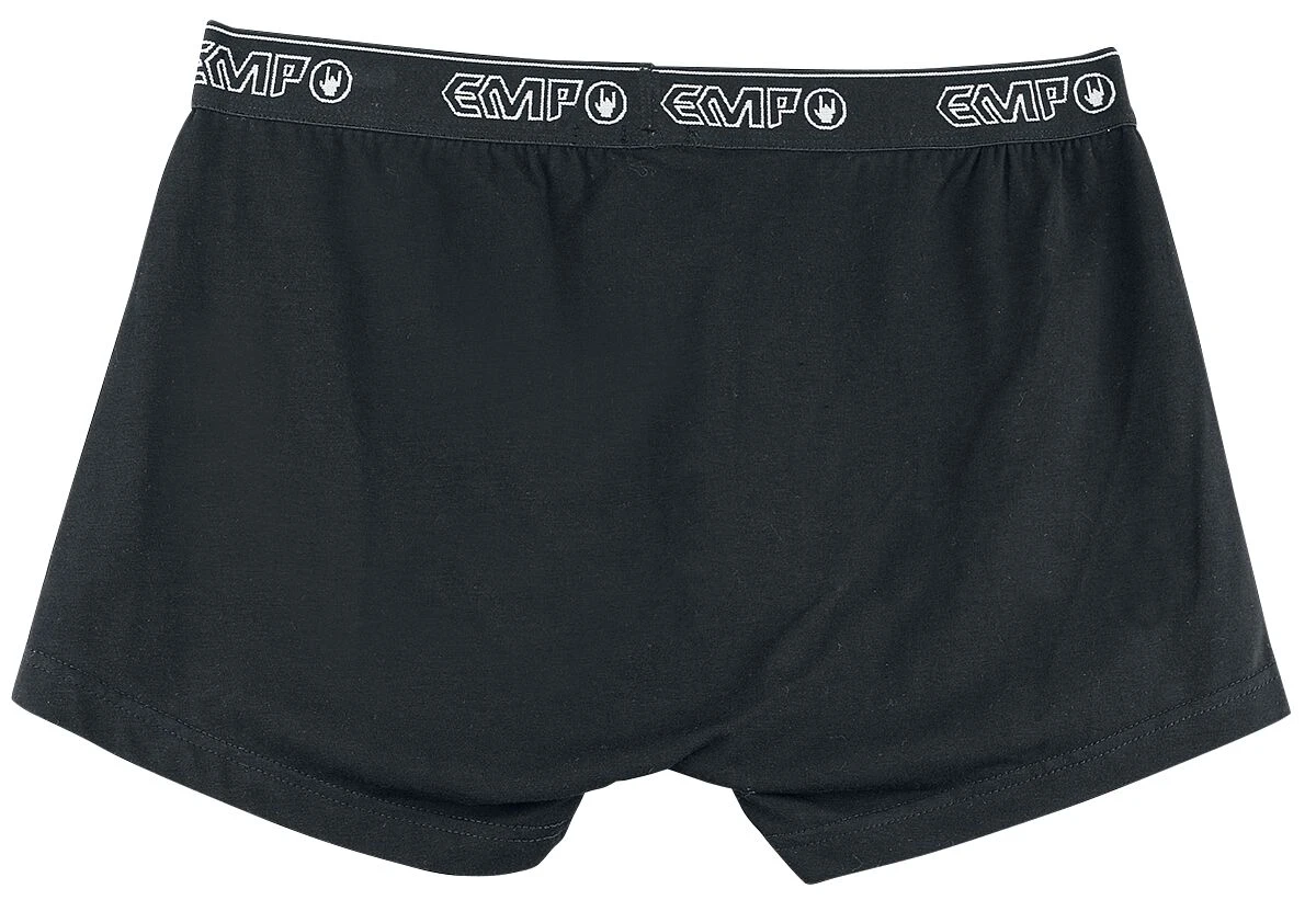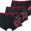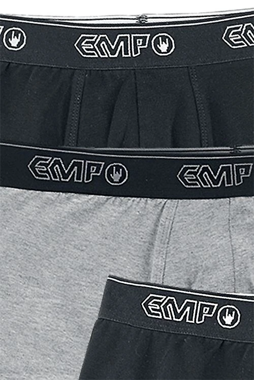 Op zoek naar nieuw ondergoed? Misschien is de set boxershorts “Devil’s Plaything” van RED by EMP dan wel iets voor jou! Deze set bestaat uit drie boxershorts, twee zwarte en een grijze, die allemaal een brede, elastische tailleband hebben waarop het logo van EMP staat. De boxershorts zitten comfortabel en zijn gemaakt van 95% katoen en 5% elastaan.
