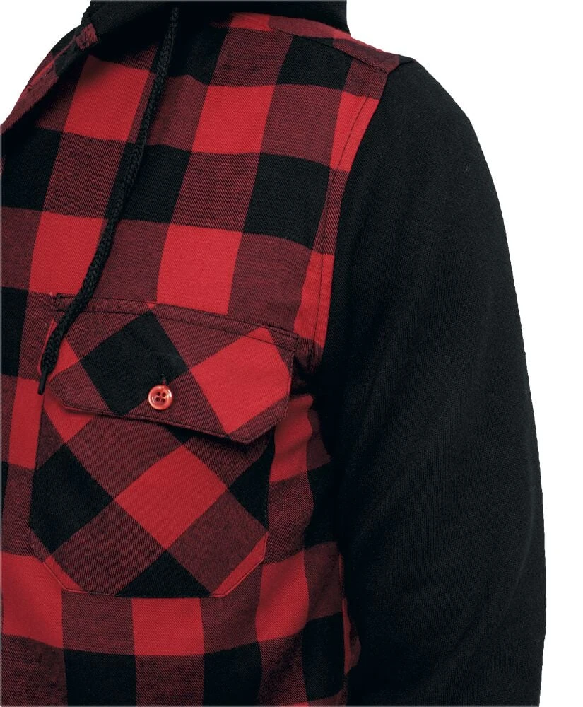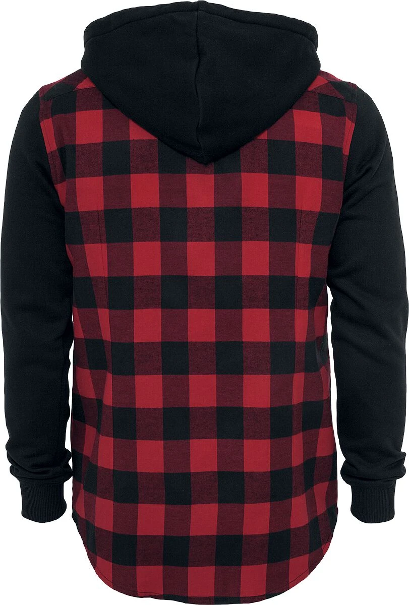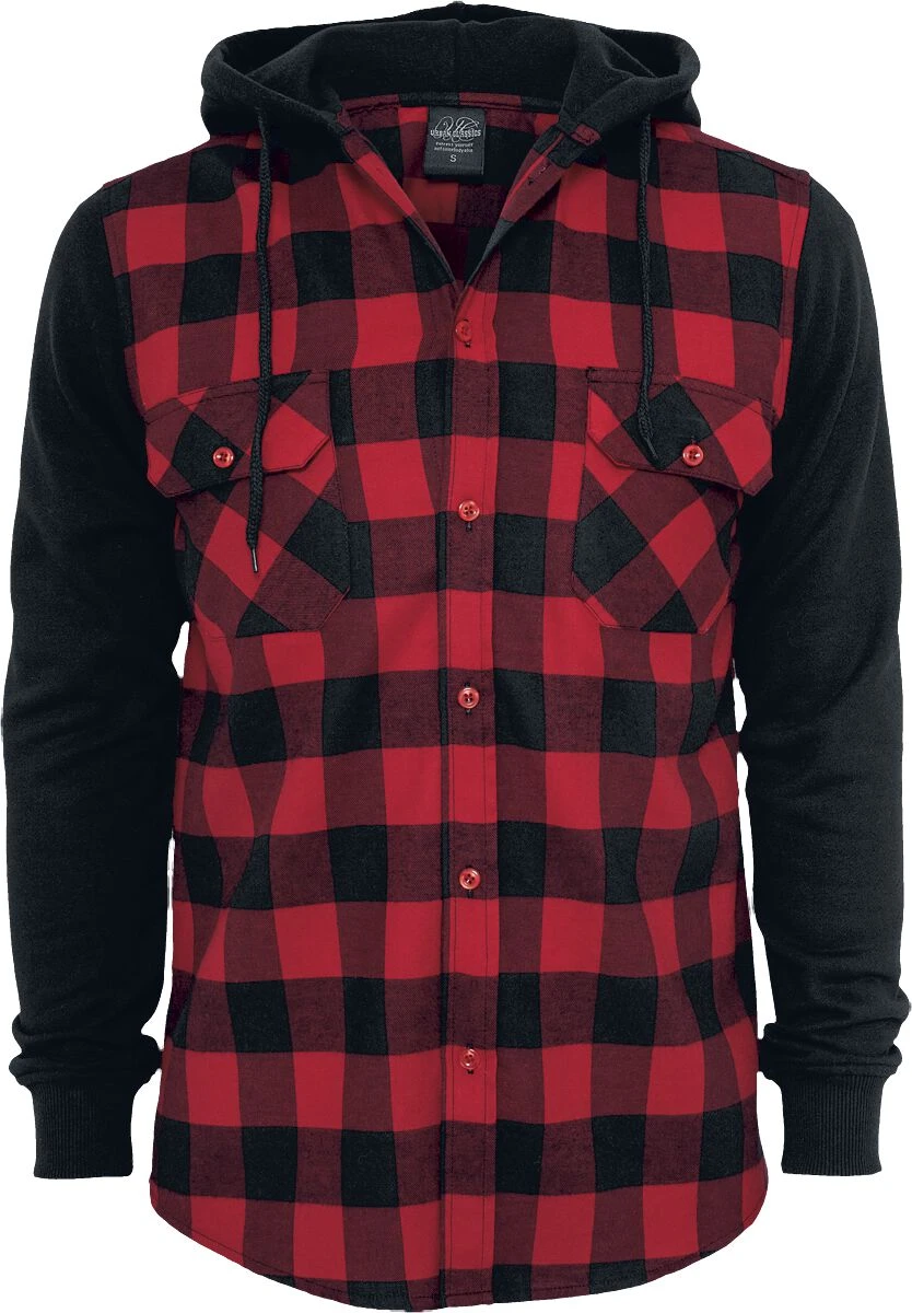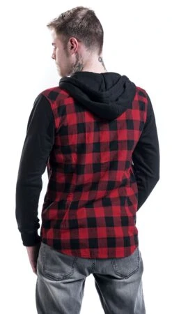 “Hooded Checked Flannel” Flanellen Overhemd Zwart-rood Van Urban Classics