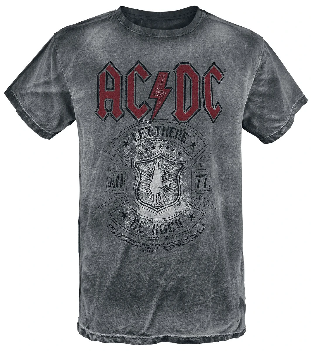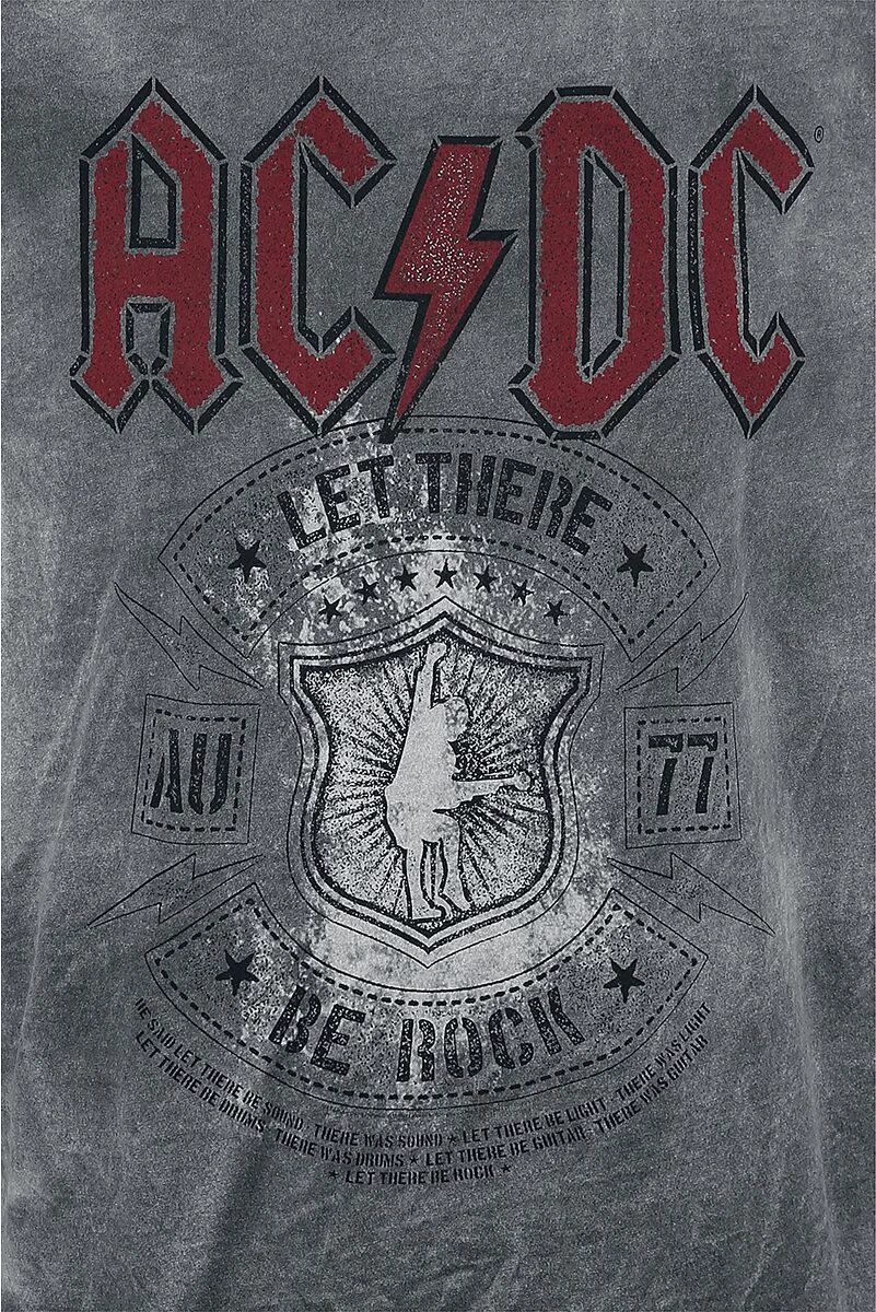 De hardrockpioniers van AC/DC hebben nieuwe, officiële bandmerchandise voor je op de markt gebracht, waaronder het grijze T-shirt “Let There Be Rock”. Op de voorkant van dit shirt staat een print van de herkenbare bandletters van AC/DC en van de albumtitel “Let There Be Rock”, waarmee je kunt laten zien dat je een echte fan bent. Daarbij heeft het shirt een interessant batikpatroon. Exclusief verkrijgbaar bij Large!