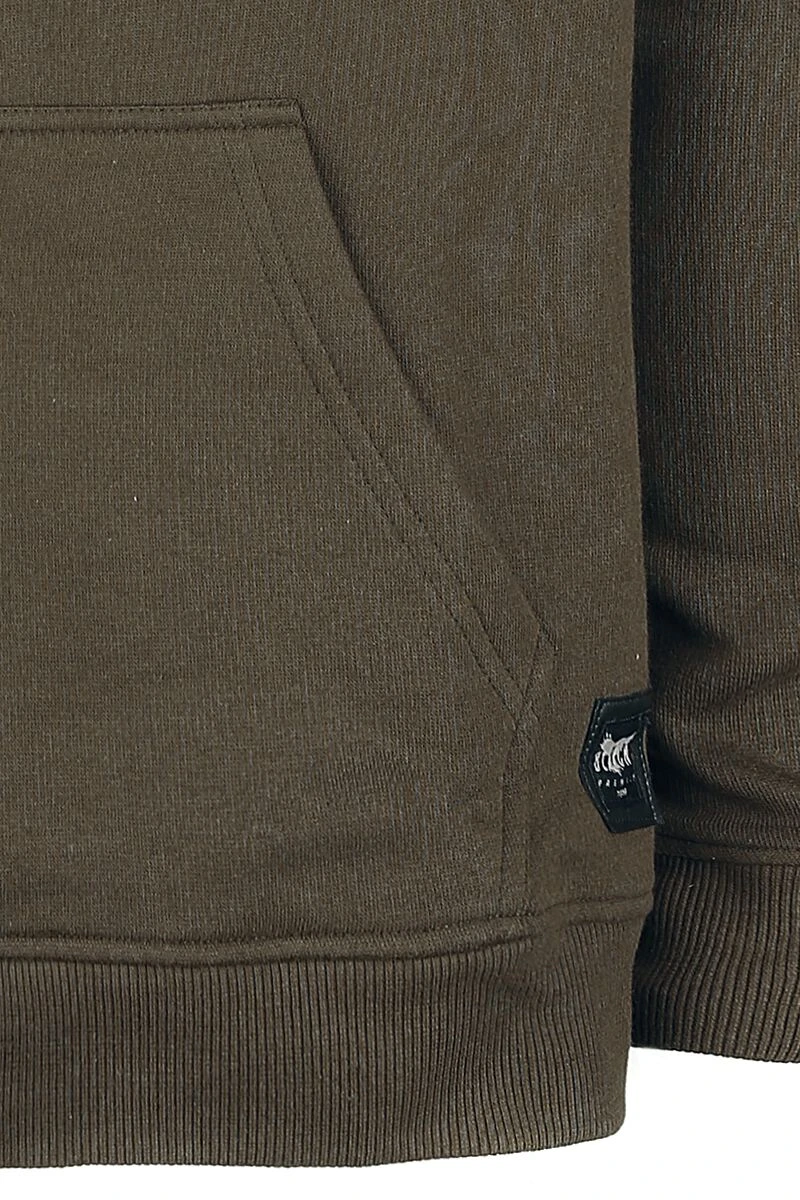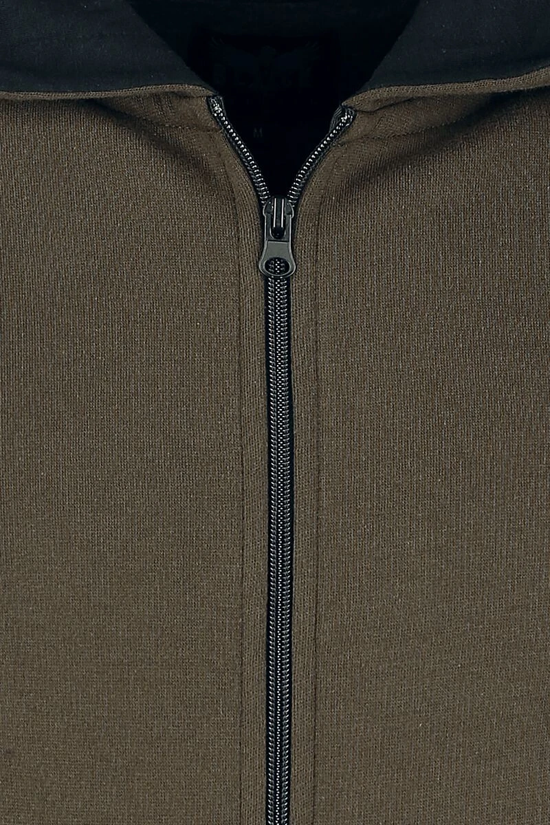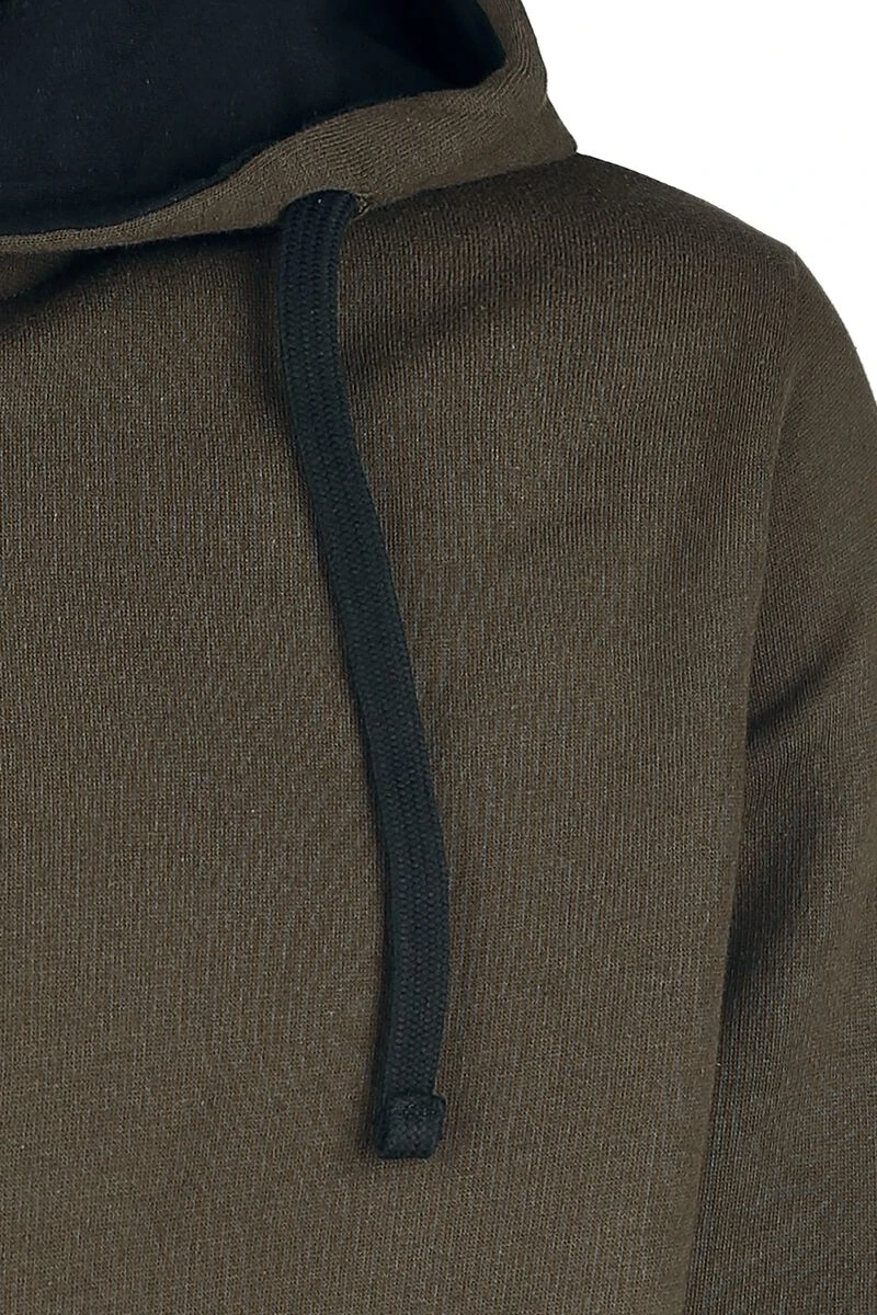 Het bruine vest “Drawn to the Flame” van Black Premium by EMP zit lekker comfortabel en heeft geen overbodige fratsen. Wat het vest wel heeft zijn praktische eigenschappen, zoals de capuchon met trekkoord, de verdeelde kangoeroezak en de geribde zomen. De capuchonvoering en het trekkoord hebben een contrasterende kleur. Exclusief verkrijgbaar bij Large!
