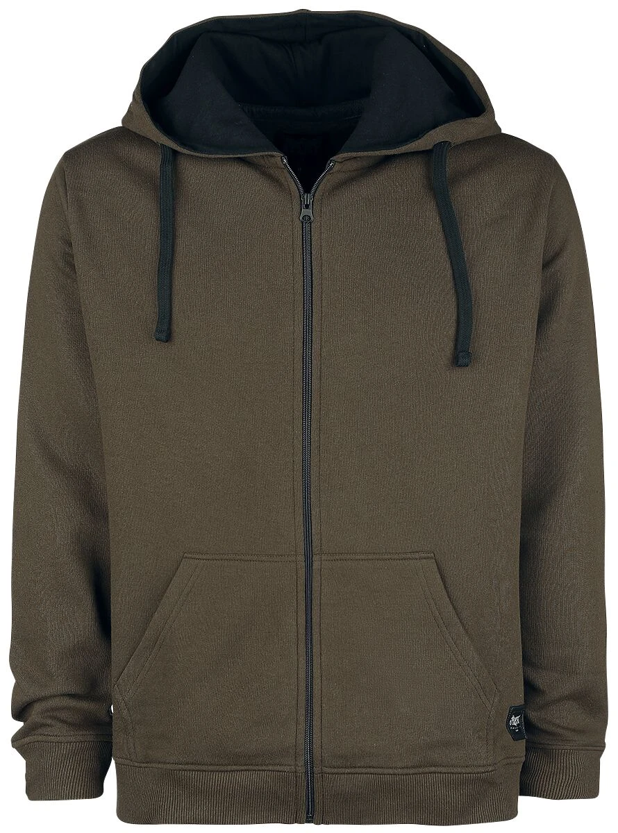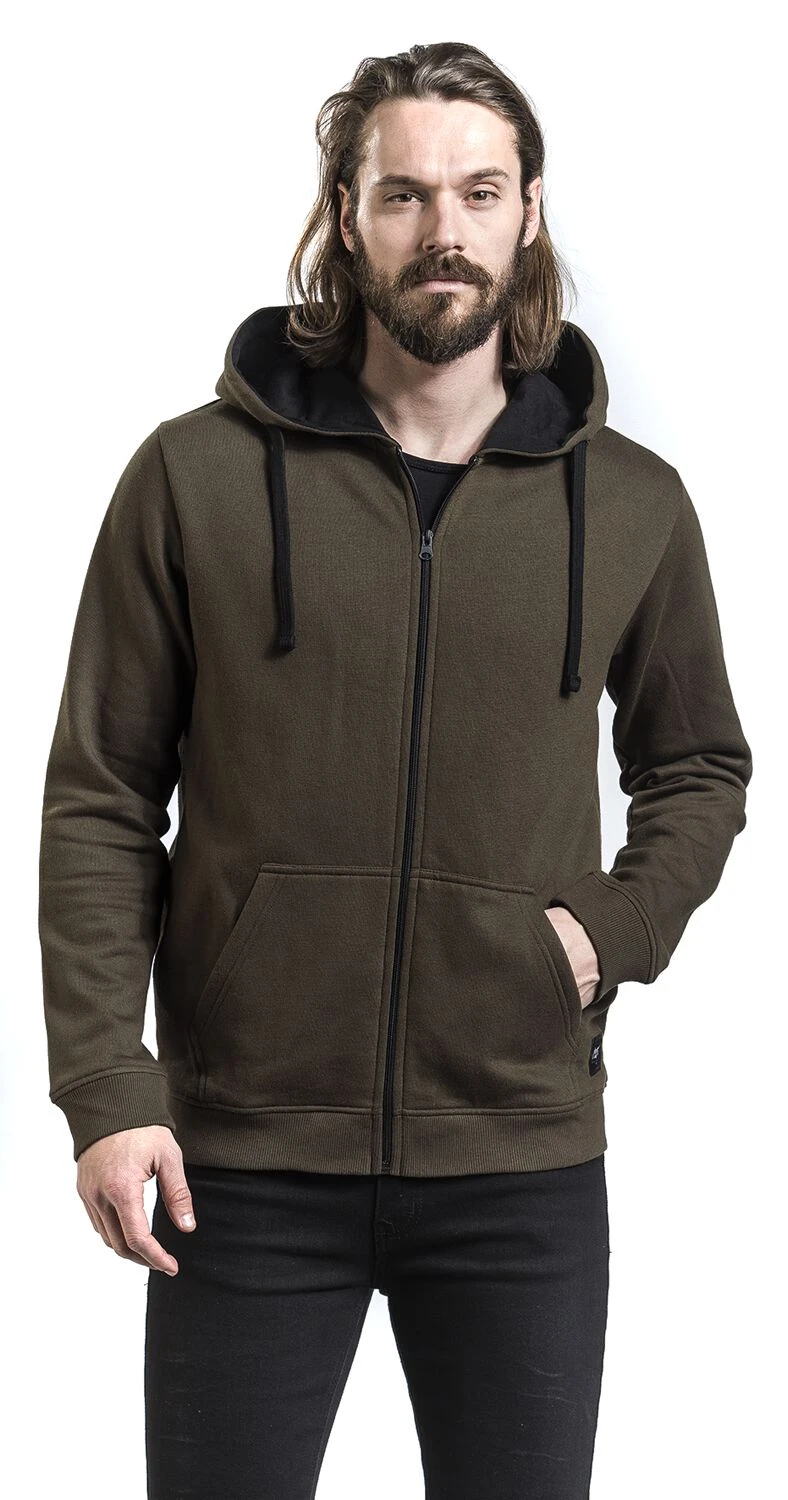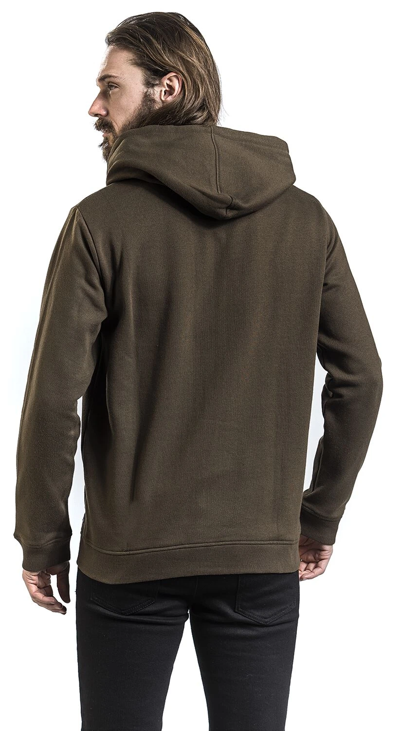 Het bruine vest “Drawn to the Flame” van Black Premium by EMP zit lekker comfortabel en heeft geen overbodige fratsen. Wat het vest wel heeft zijn praktische eigenschappen, zoals de capuchon met trekkoord, de verdeelde kangoeroezak en de geribde zomen. De capuchonvoering en het trekkoord hebben een contrasterende kleur. Exclusief verkrijgbaar bij Large!