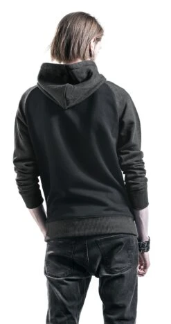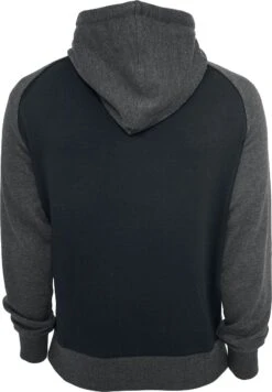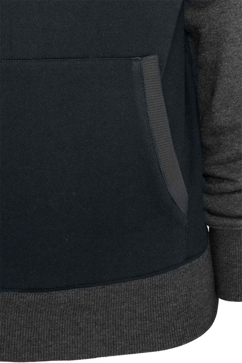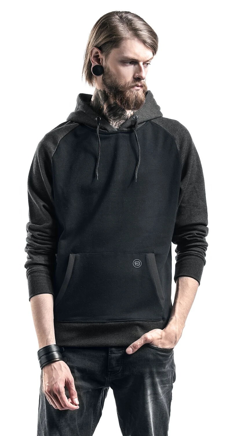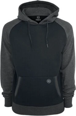 Een trui met capuchon is altijd een goed kledingstuk om te hebben voor de koudere dagen van het jaar. De zwart-antracietkleurige trui met capuchon van RED by EMP is een goeie keus. Deze trui heeft een zwarte romp en antracietkleurige raglanmouwen, geribde zomen en een capuchon met trekkoord. De praktische kangoeroezak maakt het kledingstuk helemaal compleet.