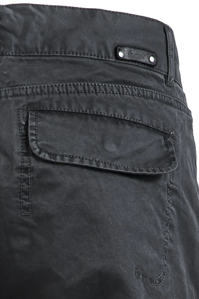 Broek in vintage look met subtiele beschadigde plekken op de zakken en riemlussen.