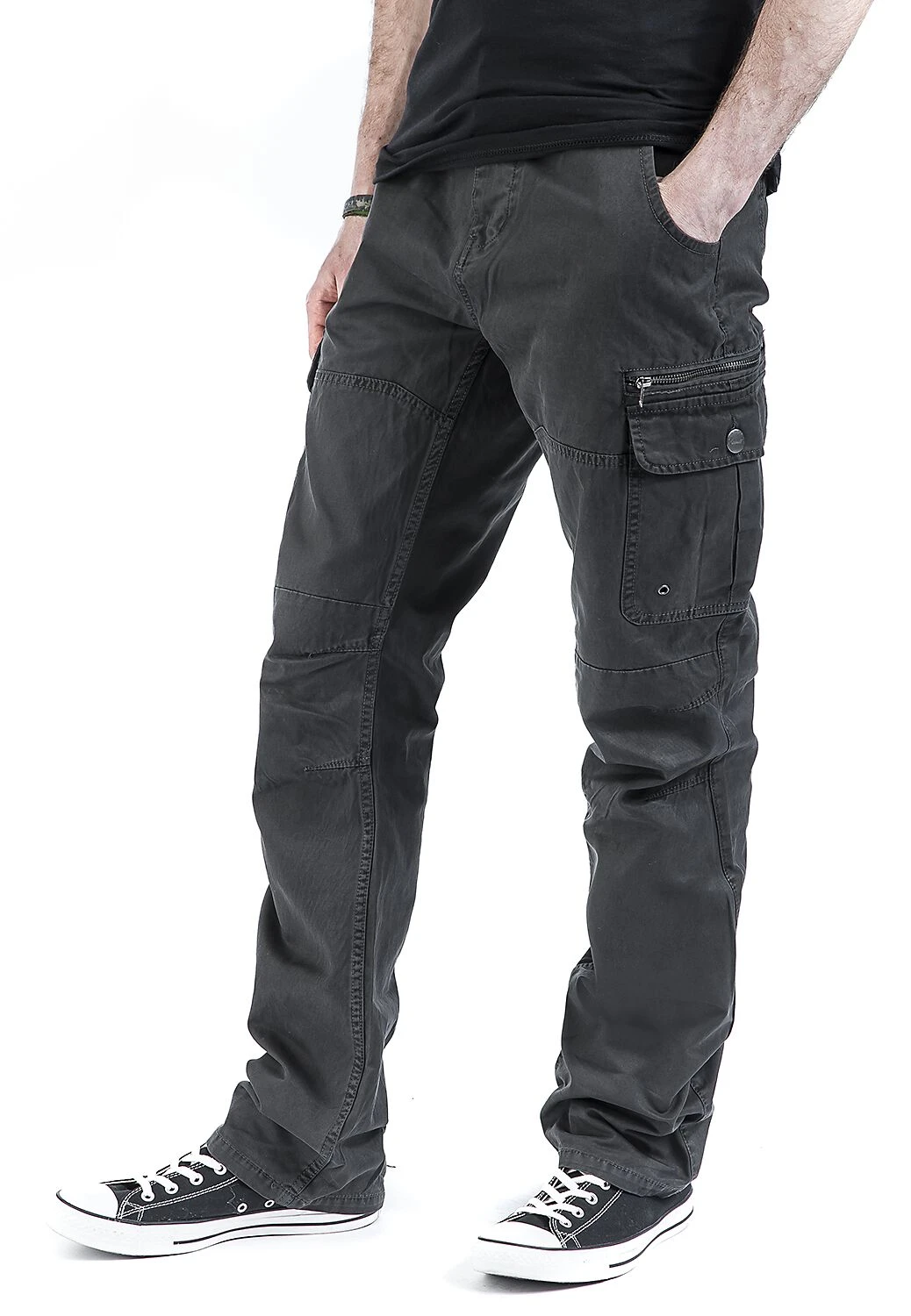 De “Rocky Star Pants” van Brandit hebben twee beenzakken met drukknoop, achterzakken met drukknoop, een extra beenzak met rits en decoratieve zomen rond de knieën. De broeken zijn gemakkelijk te combineren met allerlei soorten andere kleding en geschikt voor dagelijks gebruik.