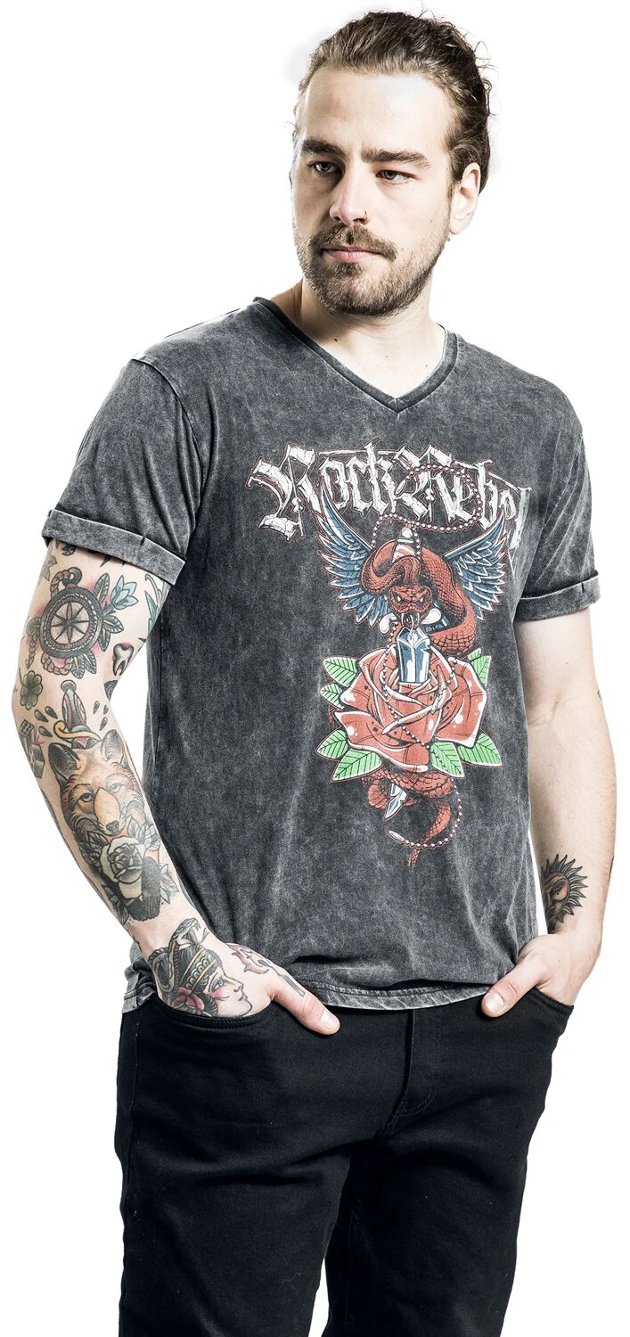 “T-shirt Met Old-school Print” T-shirt Grijs Van Rock Rebel By EMP
